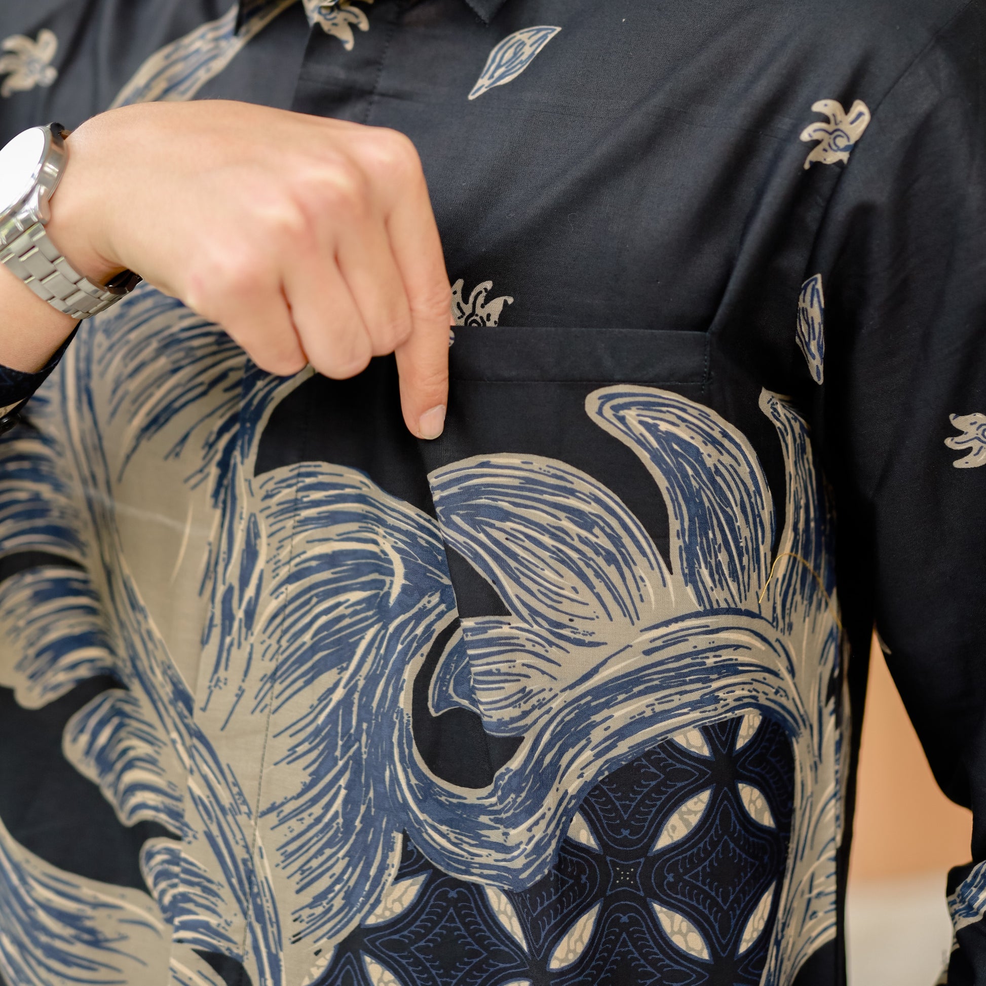 Kemeja Batik Monstera Kawung - Paduan sempurna antara tradisi batik Indonesia dan desain kontemporer yang memukau. Batik eksklusif ini menampilkan motif kawung klasik yang dipadukan dengan elemen monstera modern, menciptakan batik unik yang cocok untuk berbagai acara.